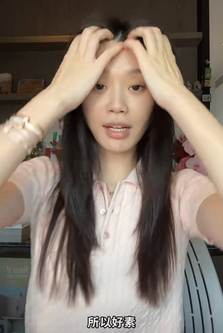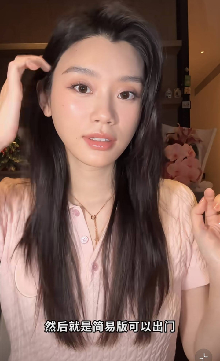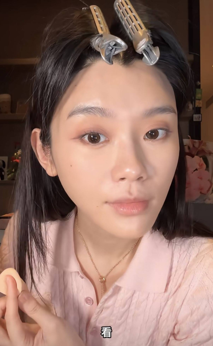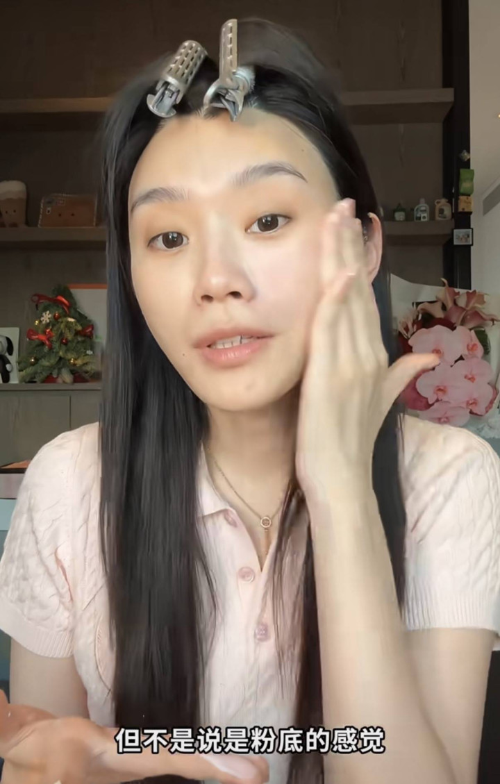 既然是化妆视频,当然是从素颜情景运转。奚梦瑶素颜的情景很真正,她的手和脸所有这个词是2个表情,脸部皮肤更暗一些。