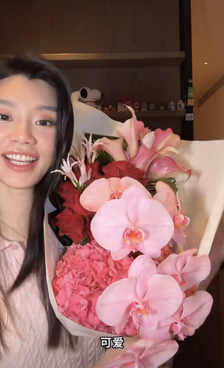 何猷君终点可爱粉色系,几乎就是直男审好意思。情东谈主节这天,奚梦瑶为了投合老公的喜好,还挑升穿了一件粉粉嫩嫩的一稔,况兼夸老公送的花很可儿。