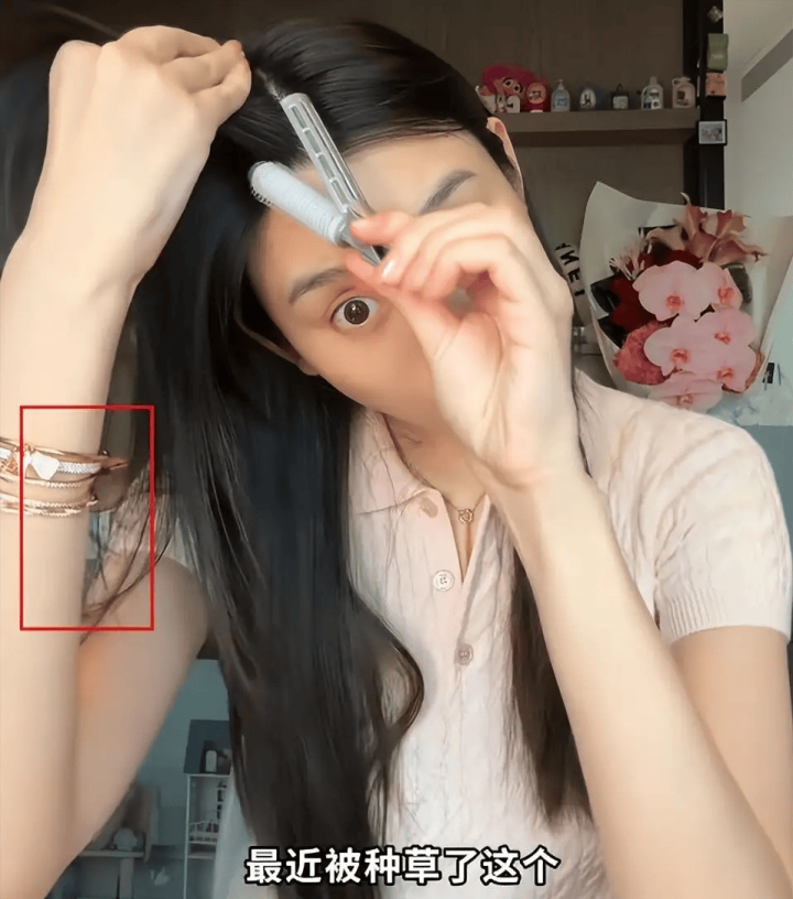 从这个角度看,奚梦瑶的眼睛很大、下巴很尖,有一种两腮无肉的嗅觉,显得她终点瘦。值得一提的是奚梦瑶手上戴了5条浪费手链,真的是能干又贵气。