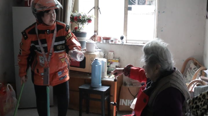 祝玫妹在送餐时顺遂替老东谈主打扫卫生